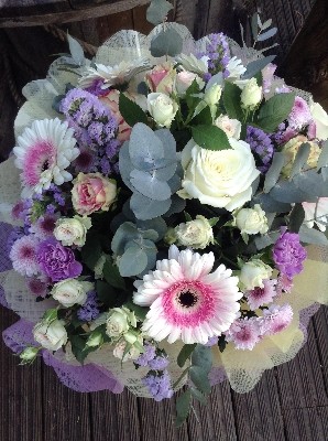 We love the soft , delicate colours of this beautiful hand tied bouquet.