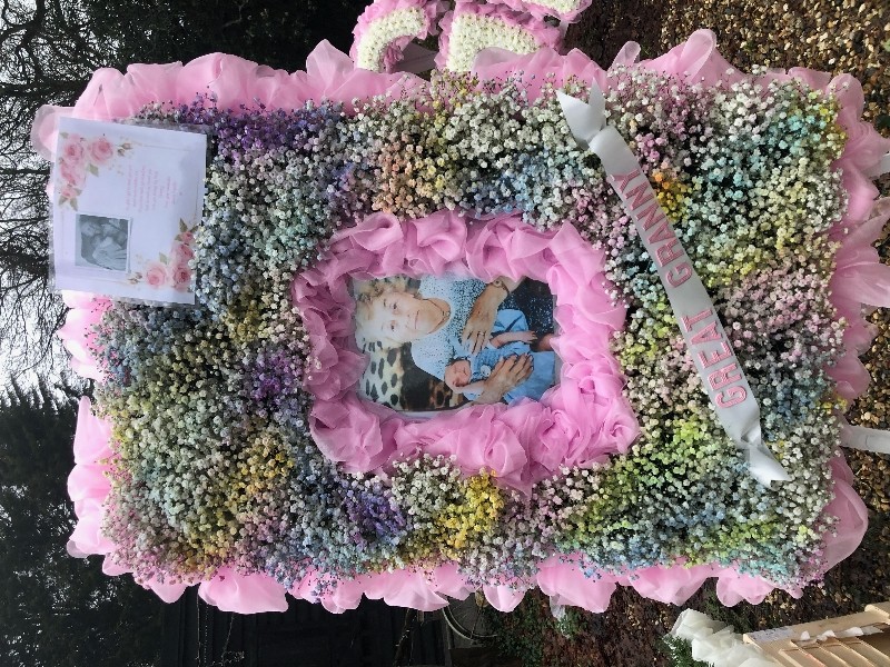 3ft tall frame on a 5ft stand a beautiful  using unicorn gyp and sparkles finished with soft pink chiffon
