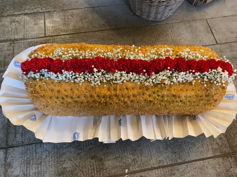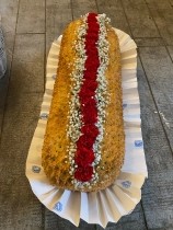 Jam and cream Eclair cake funeral flower tribute 3ft long