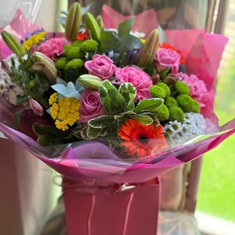 Our bright and colourful Charming hand tied is a delight to deliver to your special loved ones.