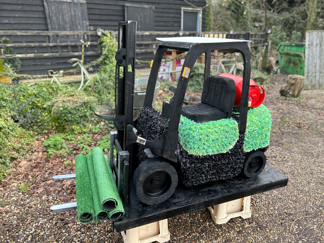 Forklift truck shaped funeral flower tribute