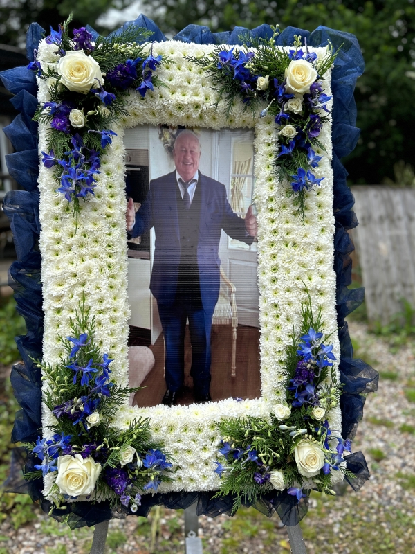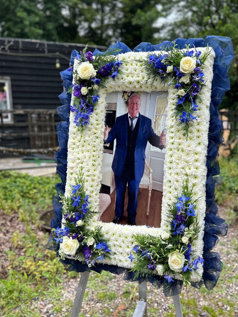 Designed and supplied by The Floral Art Studio, this funeral photo frame reflects compassionate service and high-quality craftsmanship.