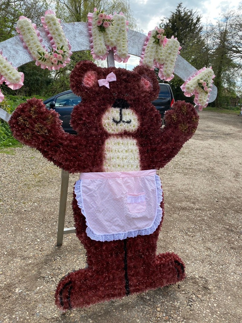 The 7ft Tall Mumma Bear Funeral Flower Tribute is a striking and deeply meaningful standing floral arrangement, created to honour a strong, protective, and loving figure affectionately known as a Mumma Bear. Designed to reflect a towering presence and a gentle, nurturing heart, this tribute symbolises strength, devotion, and unconditional love.